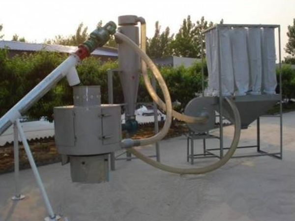 本設備篩網(wǎng)為圓簡狀,置于機體內(nèi),物料通過螺旋輸送系統(tǒng)后,和氣流混合、霧化進入網(wǎng)簡內(nèi);通過網(wǎng)簡內(nèi)風輪葉片使物料同時受離心力和旋風推進力,從而迫使物料噴射過網(wǎng),由細料排出口排出,不能過網(wǎng)的物料沿網(wǎng)簡壁從粗料排出口排出。